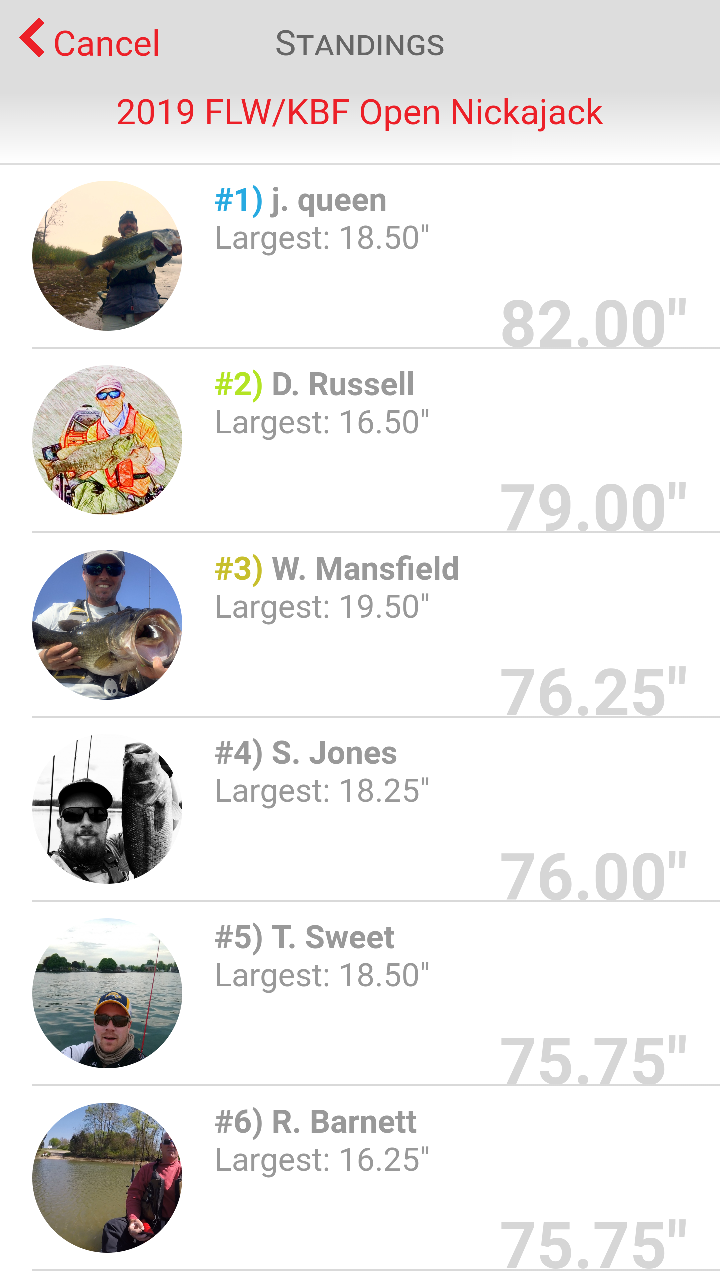 I pedaled around the flat area looking for grass but there was none. Nothing but sand bottom. This was no good. I was happy I had four fish, but my prime area was a bust so I needed a new plan fast. I moved back toward the shore and started working a Christy Critter in some laydowns and then Bang she thumped it. A nice 14.5” largemouth. And that was it. It was only 8:30AM and I had my limit. I uploaded the fish and decided to check the leaderboard. I was amazed. Two hours into the day and I was in 5th! I had another 5.5 hours to upgrade and hopefully hold my position.