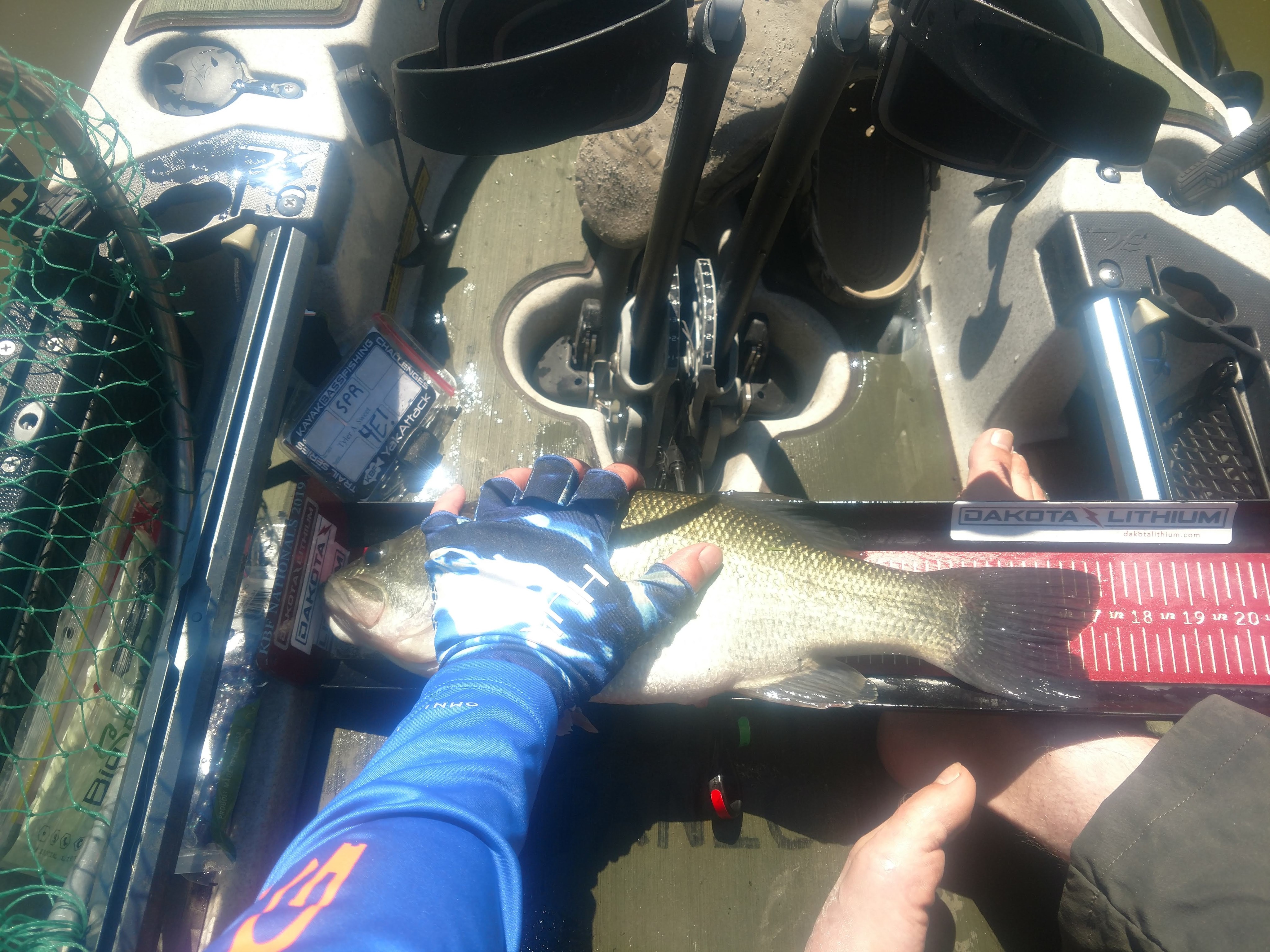 Saturday came and that 2:00 AM alarm was brutal, but I was still pumped. I had over a two hour drive to the ramp. Launch and first cast were at 5:00 AM which gave me plenty of time to get my coffee, hit the road, rig up the kayak, and be ready to go. The entire drive up I was thinking about what I was going to do and how I wanted to plan my day. There was a big front pushing in and it looked like some severe storms were going to hit my area right about noon. As I drove, I could see off in the distance a few scattered storm cells and some lighting crashing over the lake. I knew that even if any of the shad spawn was still going, that lightning would shut it down. Still, I made my plan. I would launch and work the bank leading up to the marina, then work up and down the marina. While there wouldn’t be a shad spawn, the big schools of perch were still swimming all over and would provide plenty of forage for hungry bass. After the marina, I would work north along the east shore up to the sandy area. With any luck, I would be able to finish fishing there, and then run back toward the launch by noon in case I needed to seek shelter when a storm hit. It was as good a plan as any and I was confident I could make it work. I pulled into the dark and empty boat ramp about 4:30, unloaded the kayak, got everything rigged, retied a few rods, and waited to launch.